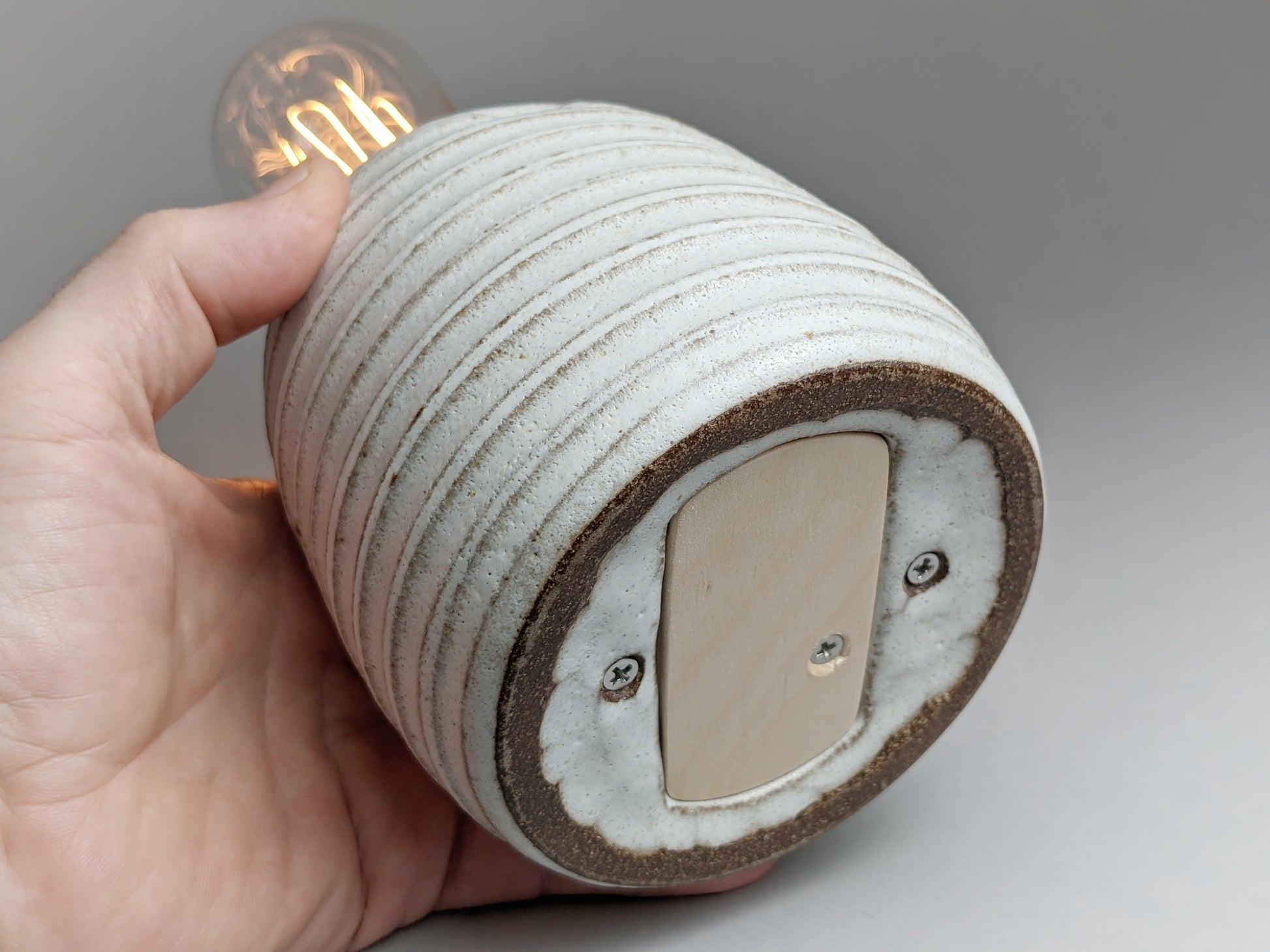 handcrafted stoneware Edison bulb lamp with satin white glaze